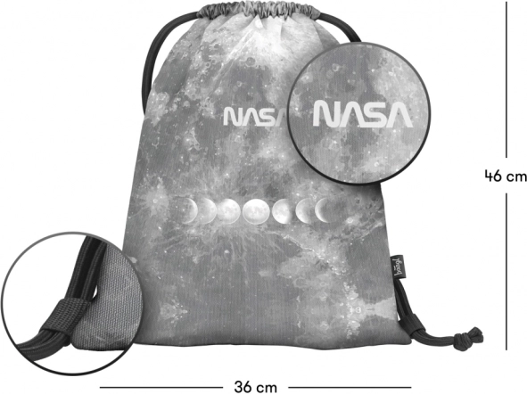 Materiale resistente e lavabile con motivo NASA. La chiusura con robuste coulisse consente anche di indossarla comodamente sulla schiena – ideale per il tempo libero.