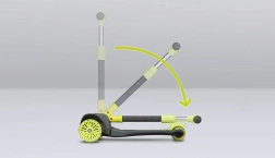 Pronto per l'uso - il monopattino non richiede montaggio, una volta tolto dall'imballo può essere utilizzato immediatamente. Il manubrio può essere piegato e utilizzato come maniglia per il trasporto.