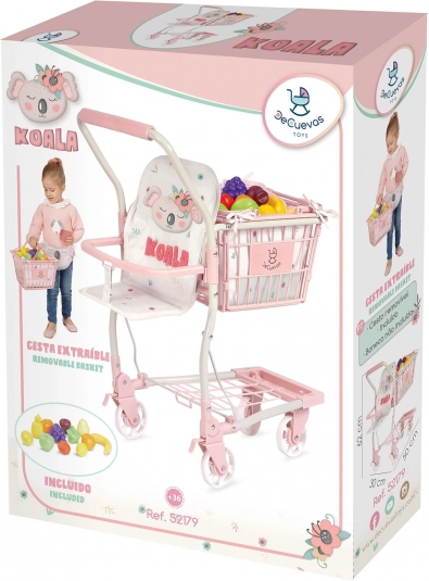 Il dolce carrello della spesa 2 in 1 per bambini della collezione KOALA combina un grande cestino su ruote con sedile per bambola e un cestino manuale rimovibile. Include 12 pezzi di frutta in plastica, ruote anteriori pivottanti, freni posteriori e spazio portaoggetti nella parte inferiore. Facile da guidare, di qualità e con un design delicato che piacerà a ogni piccola negoziante.