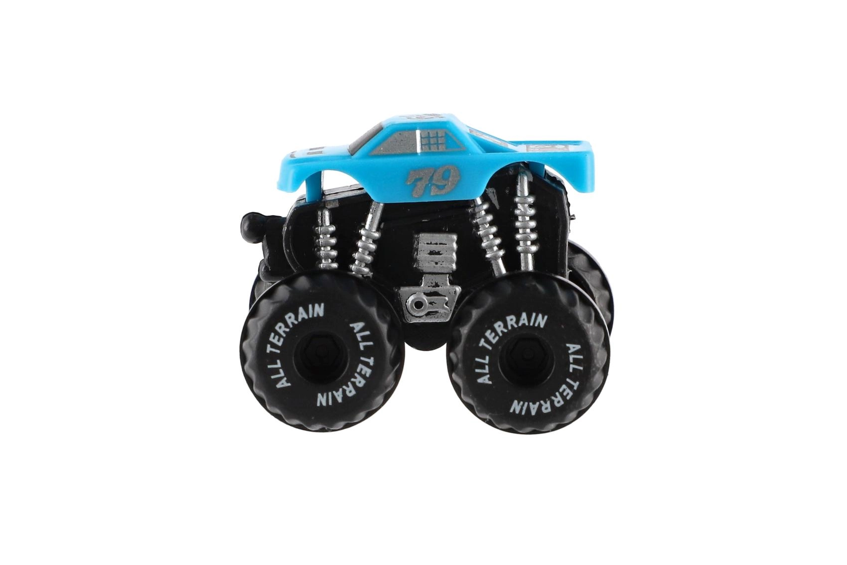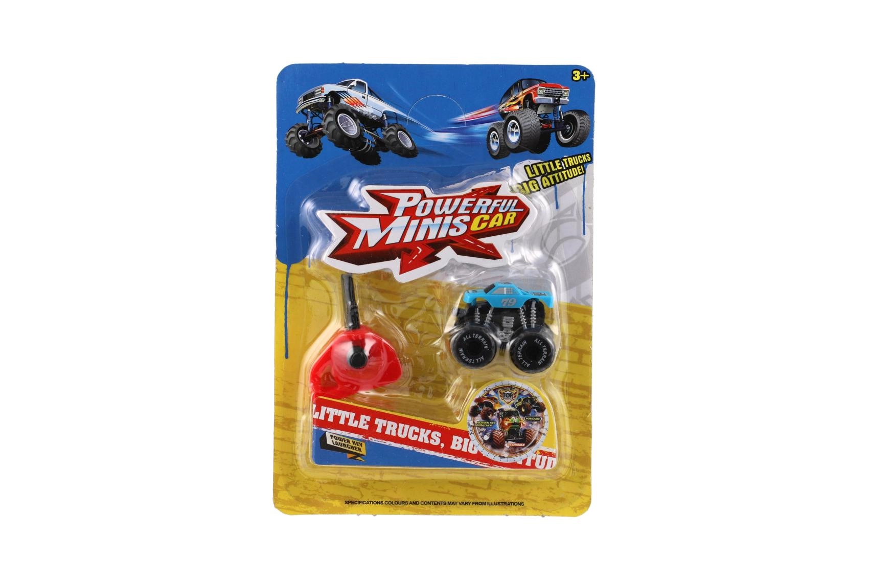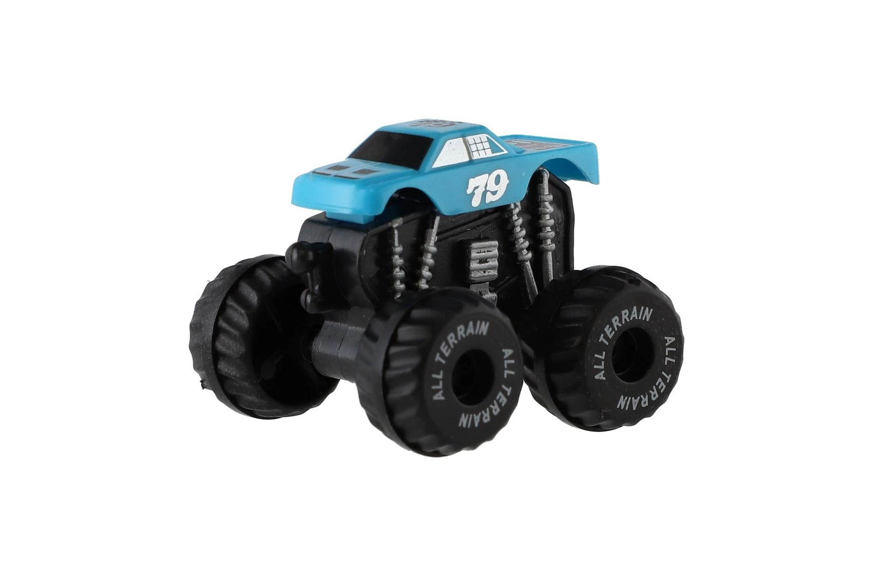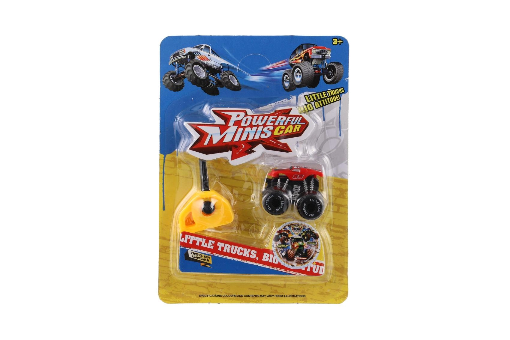 Divertente mini macchinina tipo monster truck con chiavetta a scatto per una partenza rapida che entusiasmerà ogni piccolo pilota. Basta inserire la chiave nella parte posteriore, premere il pulsante e la macchinina scatta in avanti. Grazie alle grandi ruote all‑terrain affronta diversi tipi di superficie; la struttura compatta e la plastica resistente sono ideali in viaggio e a casa. Lunghezza della macchinina: 4 cm. Adatto da 3 anni in su.