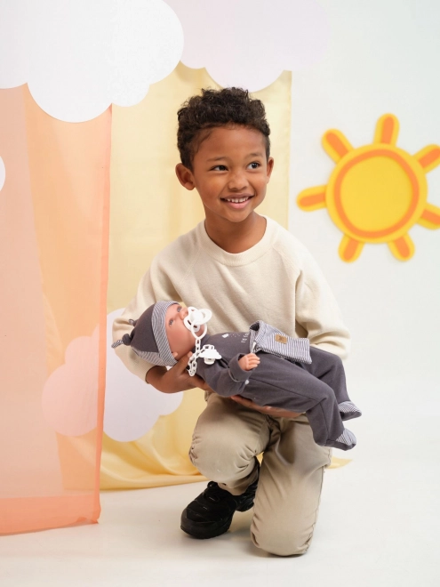 Questa adorabile bambola New Born è perfetta per i bambini che vogliono vivere l'esperienza di prendersi cura di un neonato. La bambola ha un corpo morbido in tessuto che dà una sensazione di reale vicinanza. Le braccia e le gambe sono attaccate al corpo mediante articolazioni, permettendo un facile posizionamento e seduta. La confezione include un ciuccio, che serve come accessorio ed è perfettamente integrato in ogni gioco.