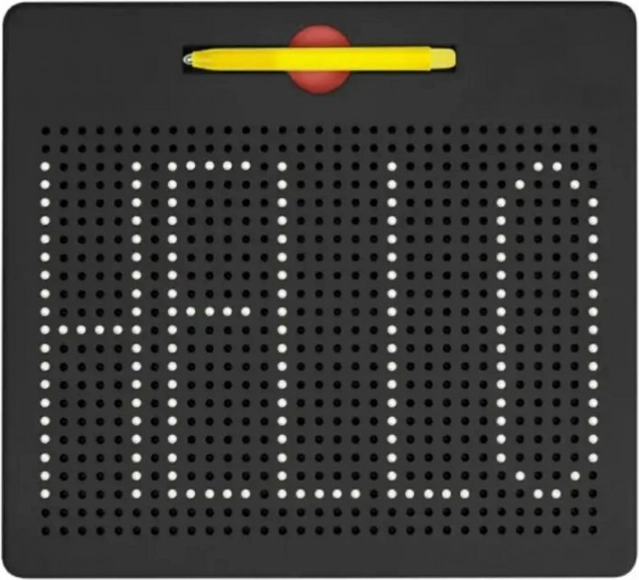 Lavagna magnetica per bambini. Dotata di fino a 714 sfere e dello stesso numero di fori, che possono essere riempiti liberamente con una speciale penna magnetica. È un giocattolo eccellente che sviluppa la creatività dei bambini. Le sfere sono protette contro la fuoriuscita e possono essere estratte solo con il pennarello, il che consente di utilizzare l’oggetto in viaggio. Non richiede alcuna fonte di alimentazione!