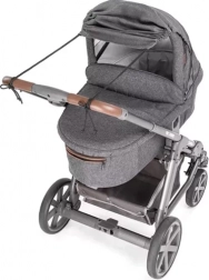 L'elastico sopra la capottina e i cordini con fermacorda permettono di fissare facilmente la tenda alla maggior parte dei passeggini e di adattarla alle condizioni attuali.