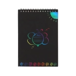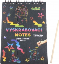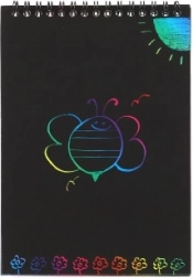 Il blocco per scalfire è ideale per piccoli artisti che vogliono scoprire le proprie capacità creative. Uno strato nero speciale su ogni foglio nasconde un sottofondo colorato, che appare rimuovendo lo strato con il bastoncino incluso.