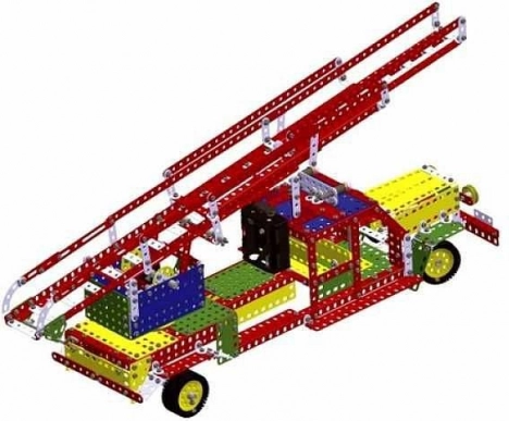 Componenti speciali e istruzioni dettagliate consentono di costruire un grande camion dei pompieri, un’autogru e molti altri modelli realistici.