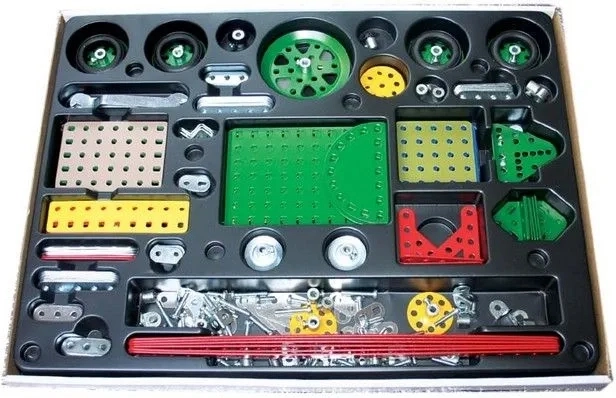 Il set di costruzioni MERKUR 100 modelli è amato per la sua diversità e le possibilità di costruzione. Contiene la maggior parte dei componenti come Merkur M5 e altri pezzi, come grandi ruote da trattore, ingranaggi, lunghe angolature e altro. Il set fornisce abbastanza pezzi per la creatività dei giovani costruttori.