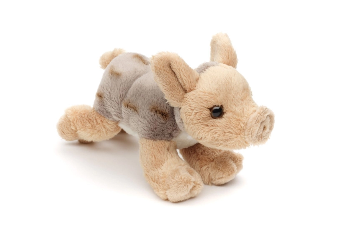 La colorazione beige‑grigia con dettagli di orecchiette e musetto dona fascino al maialino e stimola il gioco di fantasia.