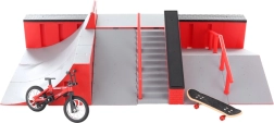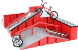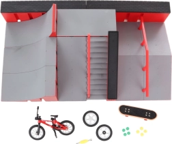 Entra nel mondo del mini skatepark dove puoi eseguire vari trucchi con accessori realistici come skateboard in miniatura e bicicletta BMX. Questo set offre:
