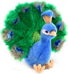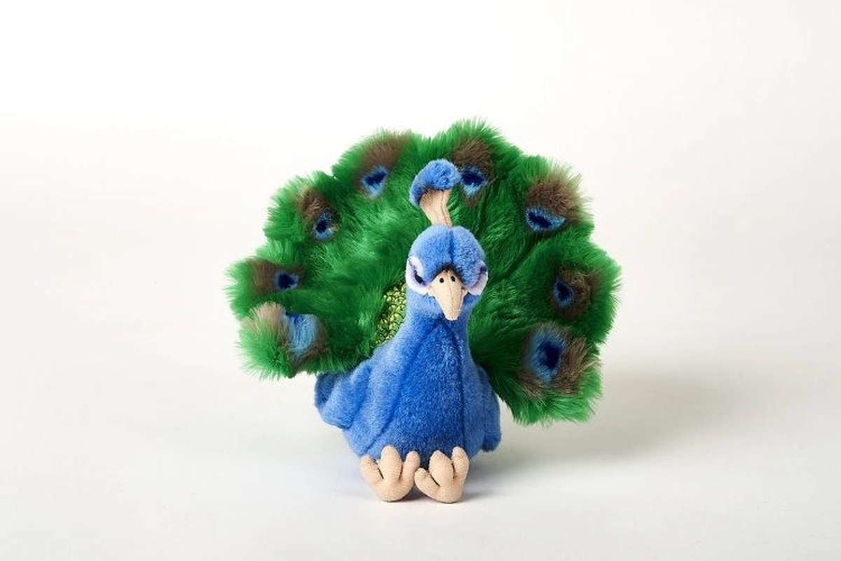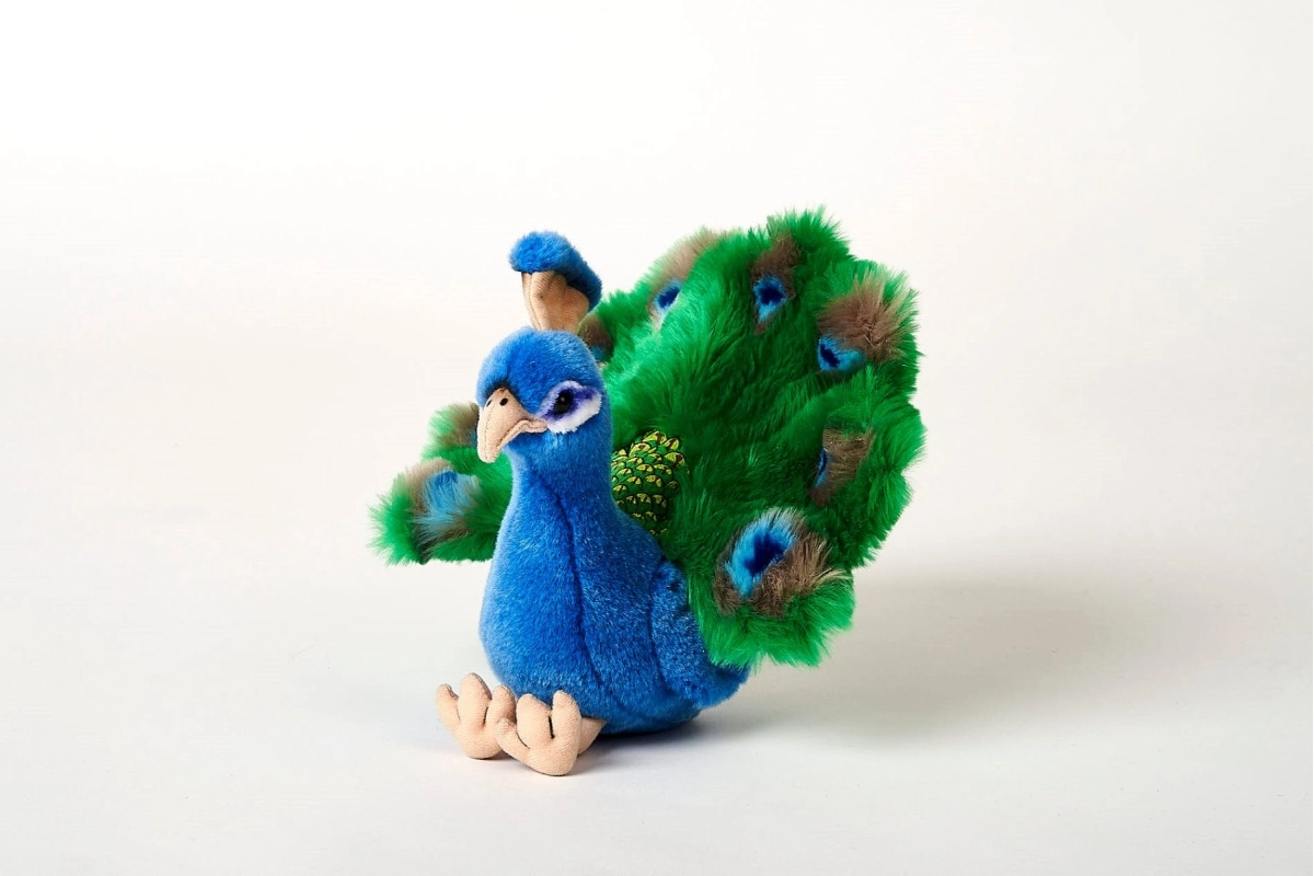 Questo pavone di peluche si distingue per il pelo morbido e setoso e per i colori vivaci che catturano lo sguardo. La misura di 25 cm è perfetta per le manine dei bambini e per comodi abbracci. La lavorazione di qualità e le cuciture sicure garantiscono una lunga durata del giocattolo.