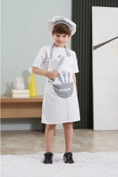 La tasca pratica sul grembiule e i motivi da cucina giocosi rendono questo set un accessorio apprezzato per la cameretta, l’asilo e la cucina di casa. La lavorazione tessile leggera e gradevole garantisce un indosso confortevole e una facile manipolazione.