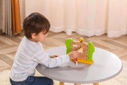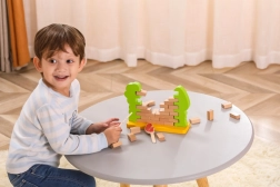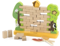 I bambini esercitano la precisione dei movimenti e la coordinazione durante la costruzione e la delicata estrazione dei “mattoni” in legno. Il gioco favorisce naturalmente la concentrazione e un controllo calmo delle mani.