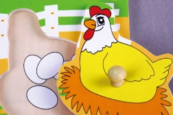 Mucca, pecora, cavallo e gallina aiutano i bambini ad ampliare il vocabolario e a riconoscere forme e colori giocando.