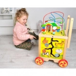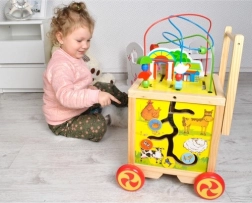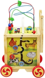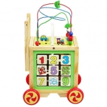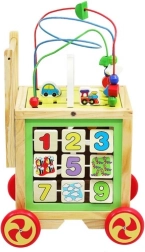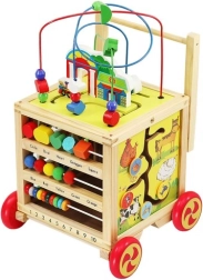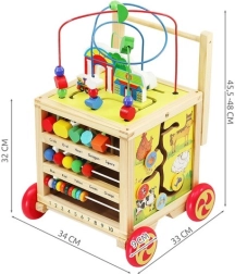 Oltre al girello, il prodotto è dotato di un cubo educativo che offre attività diversificate per lo sviluppo delle abilità. Ogni lato del cubo presenta un diverso gioco - dal percorso delle lettere al labirinto colorato.
