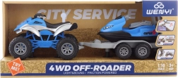 Questo quad con rimorchio e scooter, curato nei dettagli, porta ai bambini tanta azione e fantasia. Grazie agli effetti luminosi e sonori il gioco è ancora più realistico e coinvolgente. Il set include un rimorchio per il trasporto dello scooter, così i bambini possono inventare le proprie storie e avventure.