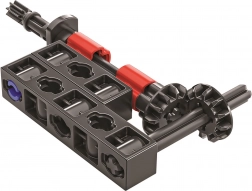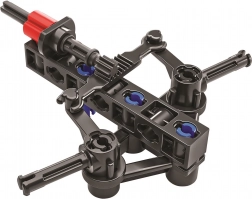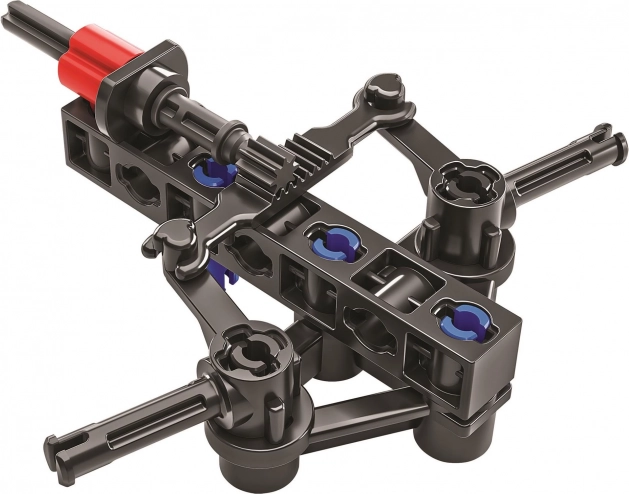 Pezzi technic con assi, ingranaggi e giunti mostrano la trasmissione del moto e i principi della meccanica nella pratica.