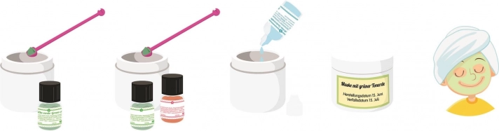 Un manuale riccamente illustrato guida i bambini passo dopo passo attraverso l’intero processo di produzione di maschere cosmetiche delicate sulla pelle.