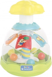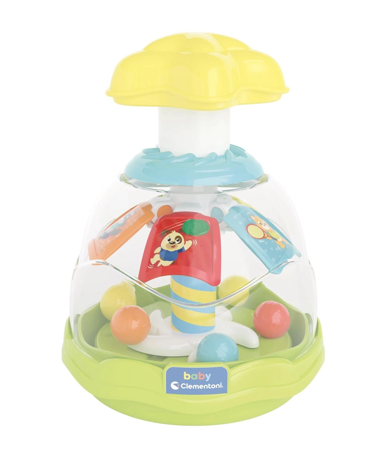 La trottola allegra e colorata con animaletti è piena di piccole palline che, ruotando, si mettono a danzare e saltellare. Durante la rotazione si aprono anche le palette interne. Il giocattolo favorisce la motricità fine, la coordinazione occhio–mano e il pensiero causa–effetto.