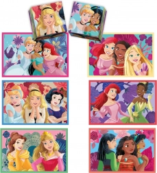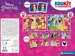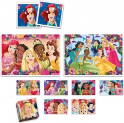 Scopri il magico mondo delle DISNEY PRINCIPESSE con un ricco set di attività per bambini. Due puzzle di dimensioni 24 × 17 cm con diverso numero di pezzi, il classico memory e i cubi da costruzione garantiscono ore di divertimento e apprendimento. Grazie al formato uniforme delle immagini, i bambini passano facilmente a livelli di composizione più impegnativi.