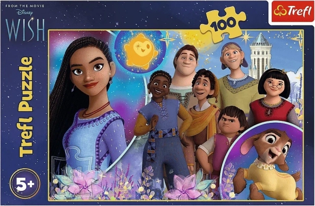 Immergiti nel mondo magico del film Disney Wish. Il puzzle per bambini TREFL da 100 pezzi offre una splendida illustrazione ricca di colori dei personaggi preferiti, che favorisce concentrazione, pazienza e il piacere di comporre insieme.