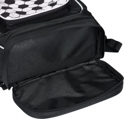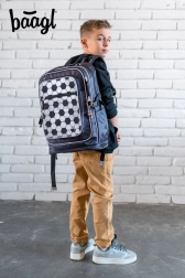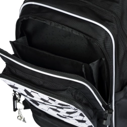 Tre scomparti separati con chiusura, organizzatore e tasca per laptop o tablet offrono ampio spazio per le esigenze scolastiche.