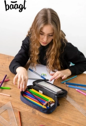 L'astuccio Zen del marchio Baagl è l'accessorio ideale per gli studenti che apprezzano l'ordine e la qualità. È realizzato in materiale robusto e tutte le sue cerniere sono del marchio YKK, il che garantisce una lunga durata. All'interno troverai un divisorio interno ribaltabile, una tasca con cerniera e una tasca per l'orario, consentendo un'organizzazione efficace del materiale scolastico.
