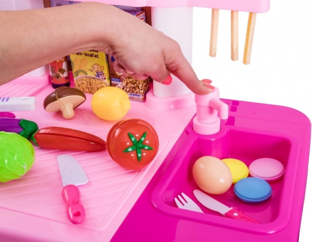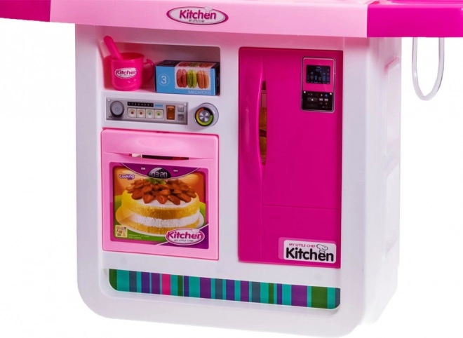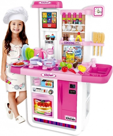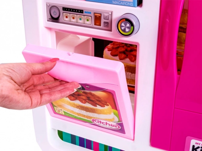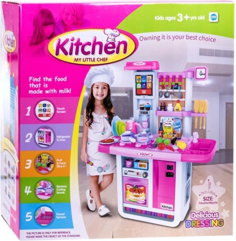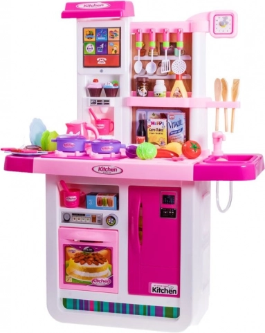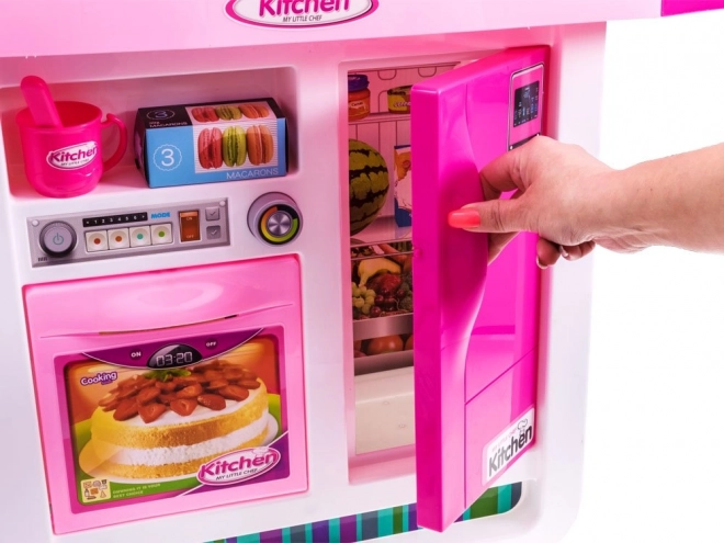 Lavello con acqua corrente, forno e frigorifero apribili, fornelli con luci e suoni: tutto per un gioco da cuochi autentico.