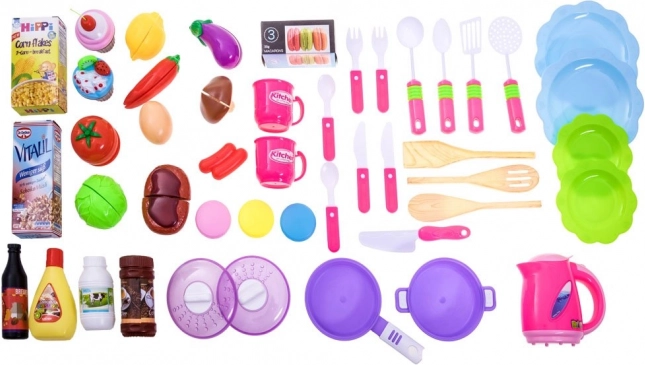Il pannello touch interattivo offre versi degli animali, musica e apprendimento dei numeri da 1 a 10 in inglese, canzoni popolari, controllo del volume e suoni del telefono. Il ricco set di accessori include verdure da tagliare con chiusura a strappo, pentola e padella con coperchi, piatti, tazze, teiera, posate e alimenti finti. I prodotti non sono destinati al consumo.