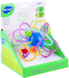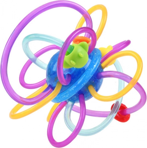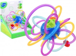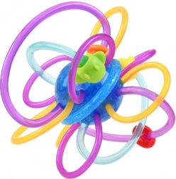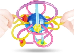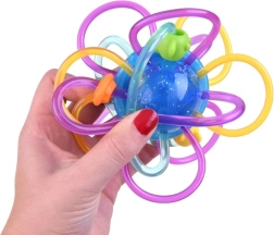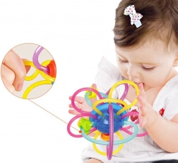 Questa “sfera” creativa con anelli intrecciati e perline è progettata per stimolare naturalmente i sensi del bambino. Gli anelli elastici e flessibili sono comodi anche per le manine più piccole, mentre la superficie liscia e morbida massaggia delicatamente le gengive. Le perline scorrevoli e il lieve tintinnio favoriscono la percezione uditiva e la concentrazione.