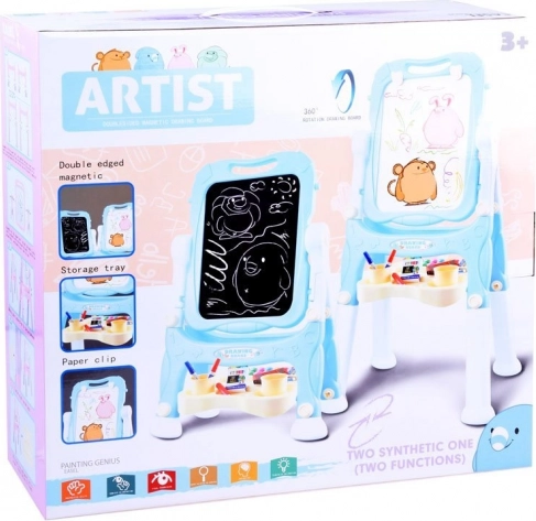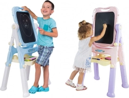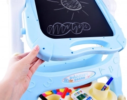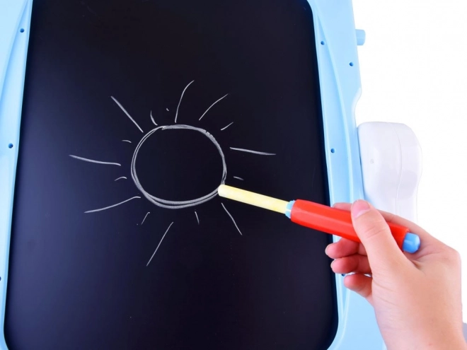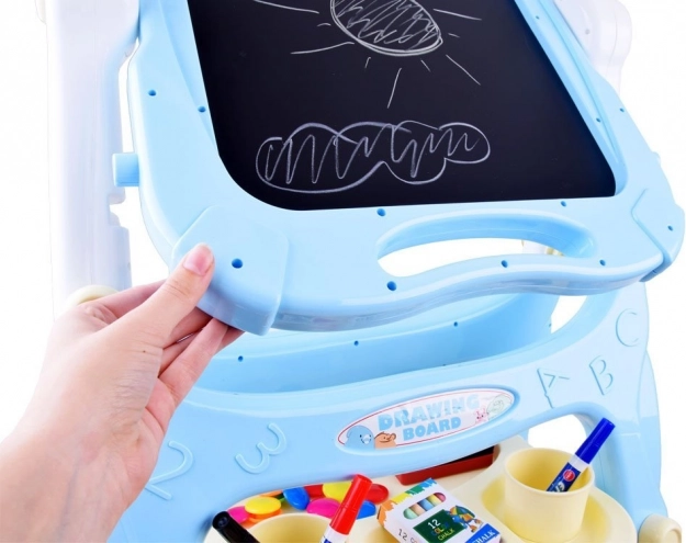 Questa lavagna da pittura stabile con cornice azzurro pastello favorisce creatività e apprendimento. Un lato è magnetico per pennarelli cancellabili a secco e per fissare magneti o fogli, l’altro è il classico lato nero per disegnare con gessetti colorati. Grazie al pratico ripiano, ai bicchierini e ai supporti avrai sempre tutto il necessario a portata di mano.
