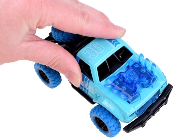 La macchinina Predator 4x4 è perfetta per i bambini che amano la velocità, le acrobazie e gli scontri spettacolari. Basta caricare, rilasciare e guardare l’azione: l’impatto scenografico è accompagnato da luci lampeggianti blu-rosse e suoni dinamici. Le dimensioni compatte facilitano la presa e il trasporto.