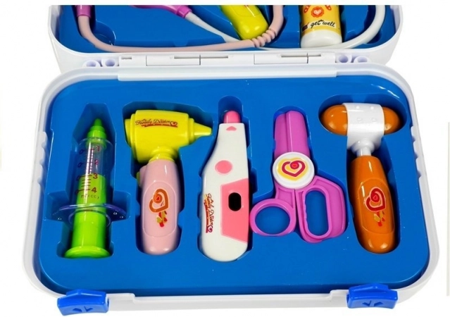 Il set include uno stetoscopio che riproduce il battito cardiaco, un termometro con possibilità di impostare la temperatura e molti altri accessori. La compatta valigetta con solido manico garantisce ordine e facile trasporto a casa e in viaggio.