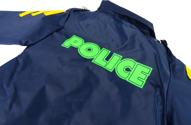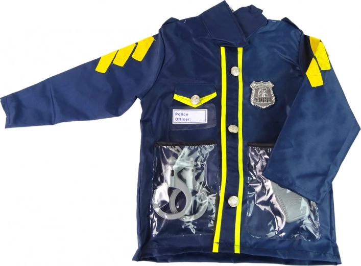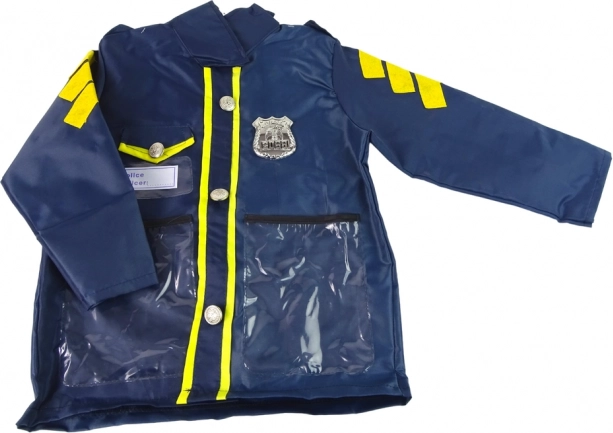 .- Uniforme della polizia con chiusura a strappo, con imitazione di bottoni e scritta POLICIE sul retro,