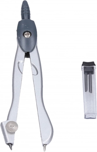 Compasso scolastico in metallo con mine di ricambio. Resistente, preciso e pronto per l’astuccio. Ideale per lezioni di geometria e disegno tecnico.