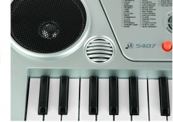Scopri la tastiera elettronica per bambini con 54 tasti, LCD retroilluminato e microfono – ideale per i primi passi musicali. Offre 100 suoni, 100 ritmi, 10 brani demo, 2 modalità didattiche, funzioni di registrazione e riproduzione e due altoparlanti stereo. Alimentazione con adattatore 230 V o 6× AA; adatta ai bambini dai 3 anni.