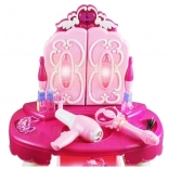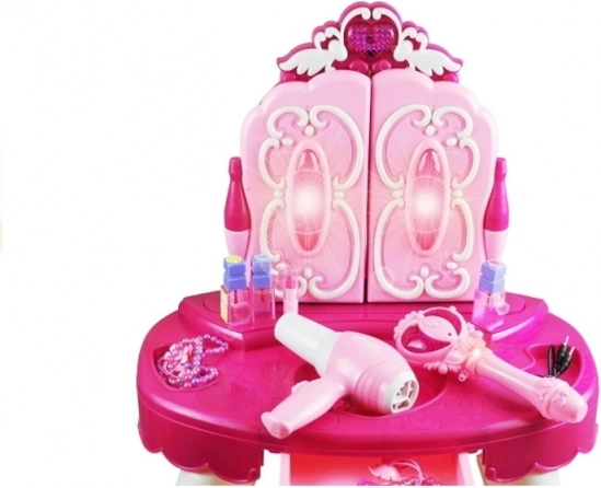 Realizza il sogno di ogni piccola vanitosa con questo magico tavolino da trucco per bambini. Specchi apribili con bacchetta magica, effetti luminosi, musica, possibilità di collegamento MP3 e phon giocattolo funzionante garantiscono ore di divertimento creativo. Il ricco set di accessori, inclusi pettinino, flaconcini e perline, stimola la fantasia e il gioco di ruolo da principessa.