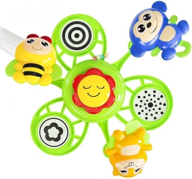 Allegri animaletti dai colori vivaci catturano l’attenzione del bambino, favoriscono il tracciamento dei movimenti e lo sviluppo della coordinazione occhio–mano.