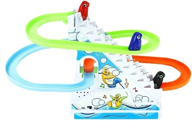 Questo set di gioco con scale mobili offre un’esperienza interattiva in cui i pinguini scivolano lungo le piste mentre risuona una melodia ritmica. Giocattolo sicuro progettato pensando ai più piccoli, che amano divertimenti colorati e vivaci.