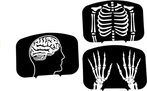 Le carte radiografiche di testa, torace e mani incoraggiano la curiosità e aiutano i bambini a comprendere le basi dell’anatomia in modo ludico.