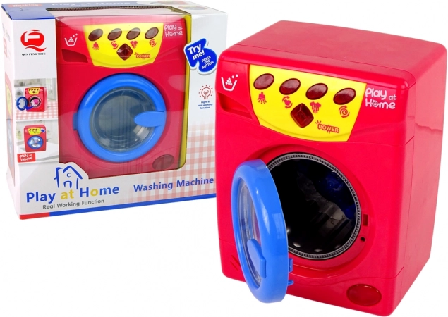 Realistica lavatrice per bambini per un gioco creativo a casa. Offre effetti luminosi e sonori, sportello apribile e programmi di lavaggio, risciacquo e centrifuga. Giocattolo divertente e sicuro per bambini dai 3 anni, che sviluppa motricità e immaginazione.