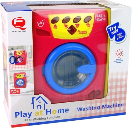 La lavatrice è alimentata da 3× AA (1,5 V), batterie incluse nella confezione, così il divertimento può iniziare subito. Le dimensioni compatte e la robusta struttura in plastica la rendono un giocattolo ideale per la cameretta e per i viaggi.