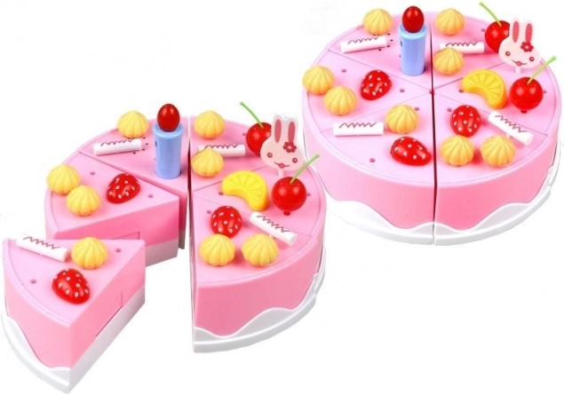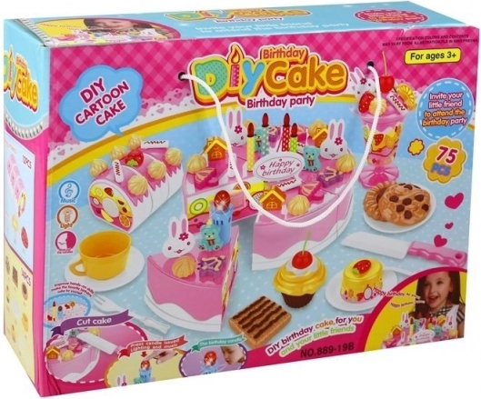 Il set comprende in totale 75 pezzi: oltre alla torta, pasticcini, biscotti, rotolo, piattini, posate, candeline e tante decorazioni che si inseriscono facilmente nella torta. I bambini allenano motricità fine, cooperazione e comunicazione giocando insieme alla pasticceria o alla festa di compleanno.