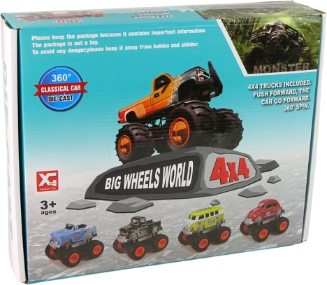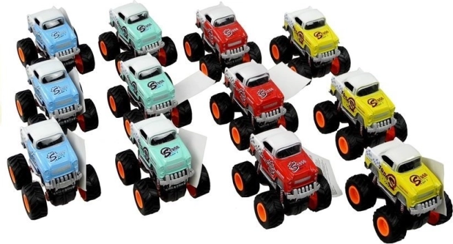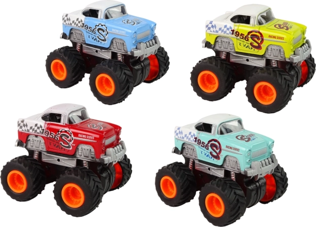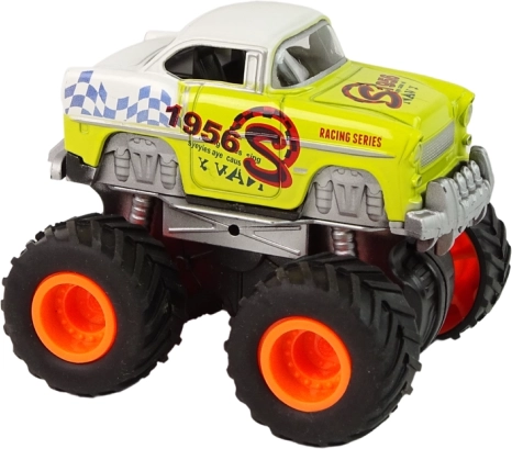 Robusto monster truck 4x4 per piccoli piloti che offre ruote grandi, ottima aderenza e divertimento su ogni superficie. Disponibile in 4 colori (rosso, giallo, blu, verde). Dimensioni compatte, costruzione robusta e design sicuro per bambini dai 3 anni.