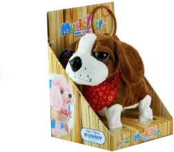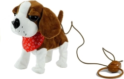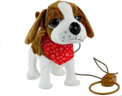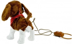 Il cane di peluche interattivo è realizzato con un materiale morbido, atossico e ecologico, piacevole al tatto. Il giocattolo ha grandi occhi scuri, una coda che si muove allegramente e un fazzoletto rosso per un maggiore fascino. Il lungo guinzaglio con telecomando permette al bambino di controllare facilmente i movimenti del cane, rendendo il gioco molto realistico e interessante.