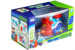 Trenino colorato con ruote mobili permette ai bambini di divertirsi su varie superfici. Oltre al trenino, il set comprende anche figurine e attrezzi come chiave e cacciavite, perfetti per le mani dei bambini e facili da usare. Il giocattolo amplia così le possibilità di gioco secondo la fantasia dei bambini.