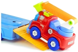 Questo set colorato di veicoli, che consente lo smontaggio e l'assemblaggio, stimola la creatività e le abilità motorie dei bambini. Comprende un trasportatore, un'auto della polizia e un camion dei pompieri che possono essere facilmente smontati con attrezzi di plastica. Questo giocattolo interattivo combina la possibilità di un gioco condiviso con i genitori o i fratelli, e il gioco autonomo.