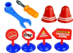 Il set include figurine, attrezzi e segnali stradali che insegnano ai bambini il mondo dei meccanici e degli strumenti di base attraverso il gioco.