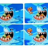 Estraete i pesciolini in base alle carte e non fatevi prendere – lo squalo può chiudere la bocca in qualsiasi momento! Un gioco rapido e divertente per bambini e adulti che allena i riflessi e la motricità fine.
