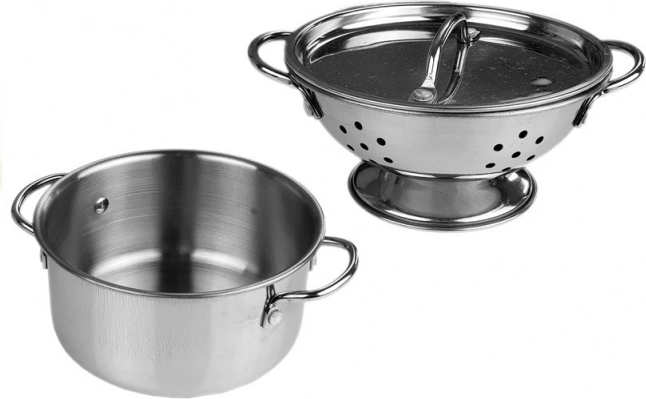 Comprende gli utensili da cucina di base come pentola, padelle e scolapasta, ideali per giocare a cucinare.