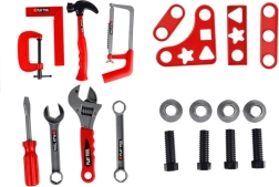 Grande set di attrezzi per i piccoli artigiani, che contiene molti elementi e porta gioia a ogni bambino. Un gioco creativo che sviluppa abilità manuali e pensiero logico.