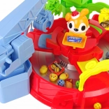Questo acchiappa-dolci colorato porta l’atmosfera delle macchinette da intrattenimento direttamente a casa tua. Il centro del gioco è una giostra rotante con “prelibatezze” in movimento, attorno alla quale sono posizionate tre gru meccaniche nei colori verde, blu e giallo. Le gru si controllano con una manovella manuale per abbassare con precisione l’artiglio: vince chi ne acchiappa di più!